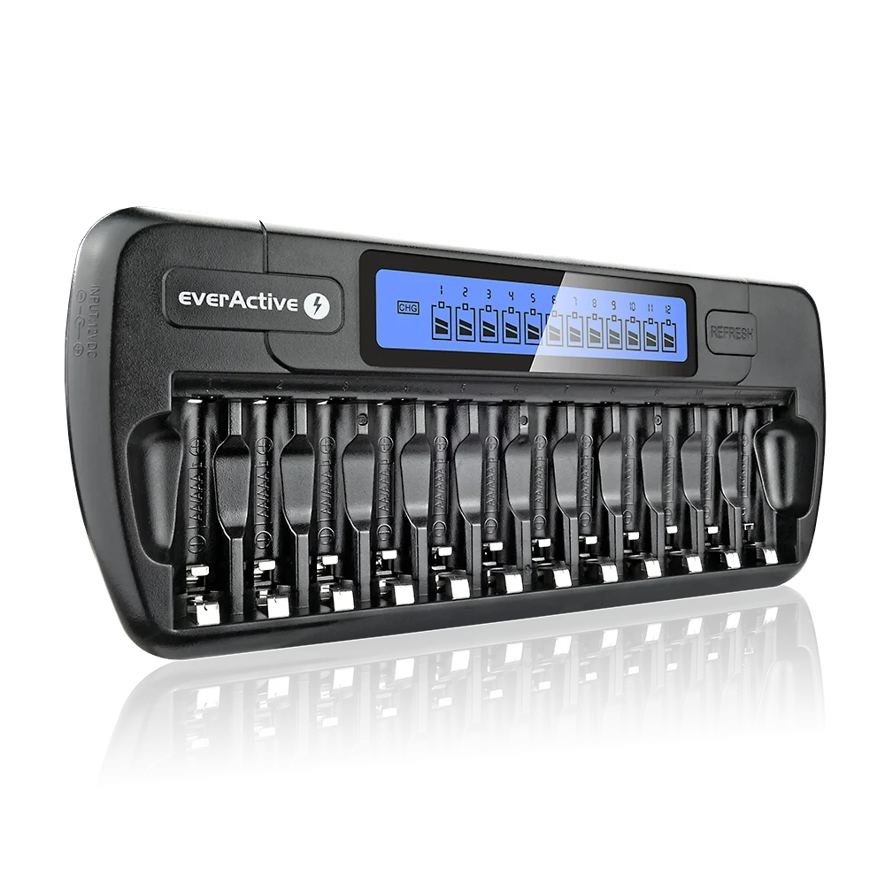 EverActiveNC1200 geavanceerde 12-kanaals batterijlader voor AA/AAA NiMH/NiCd met LCD display en refreshfunctie
