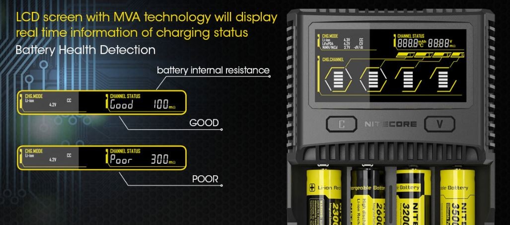 Deze super snelle batterijlader is een intelligente 4 kanaals lader van Nitecore de SC4 (Superb Charger). Iedere batterij wordt apart geladen met max 3A . De lader is geschikt voor Ni-MH, Li-Ion, LiFePO4 en IMR batterijen. De batterijen worden geheel automatisch geladen.