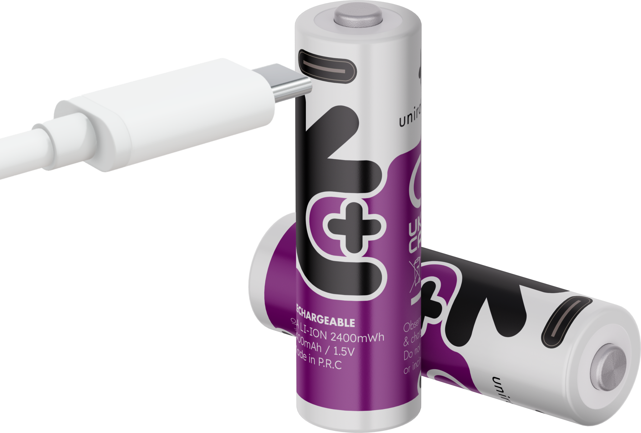 UnirossUSB-C Oplaadbare AA Li-ion Batterijen - 1.5V Constante Output - 1500mAh / 2400mWh - Set van 4 inclusief 4-in-1 Laadkabel