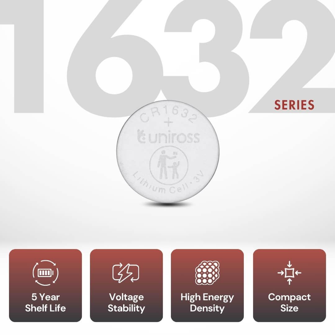 De Uniross CR1632 lithium knoopcel batterijen zijn ontworpen om langdurige en stabiele energie te leveren aan kleine, veeleisende apparaten. Dankzij de Lithium-Mangaandioxide chemie bieden deze cellen een hoge energiedichtheid en uitstekende prestaties bij diverse temperaturen.