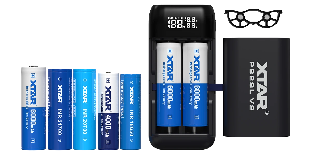 XTARPB2SL V2 draagbare slimme 2-in-1 batterij lader en powerbank voor 18650/21700 Li-ion batterijen